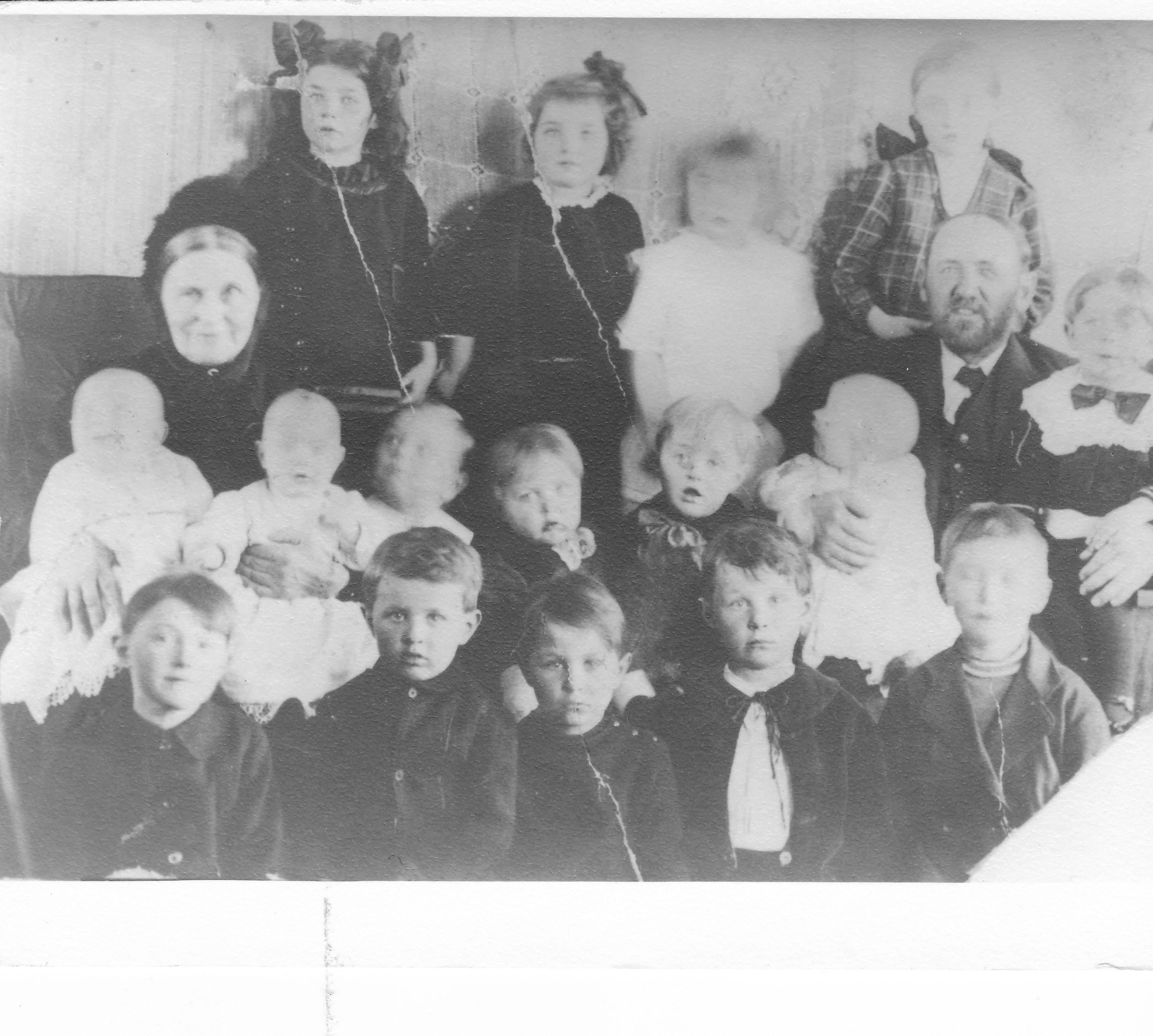 My grandmother Lena, on the other hand, had no cousins, no aunts and uncles in Waldheim or any place else in North America. She was not a farm girl, but when her father Heinrich Zimmermann married the widowed Elisabeth Willems, she suddenly found herself living on a farm in a huge pre-established family. The five Zimmermann children now lived in a house with nine step-siblings. Four of those step-brothers and sisters were their own age, but the other five were older, some much older. The Zimmermann children must have felt disoriented and intimidated, over-whelmed and out-numbered.