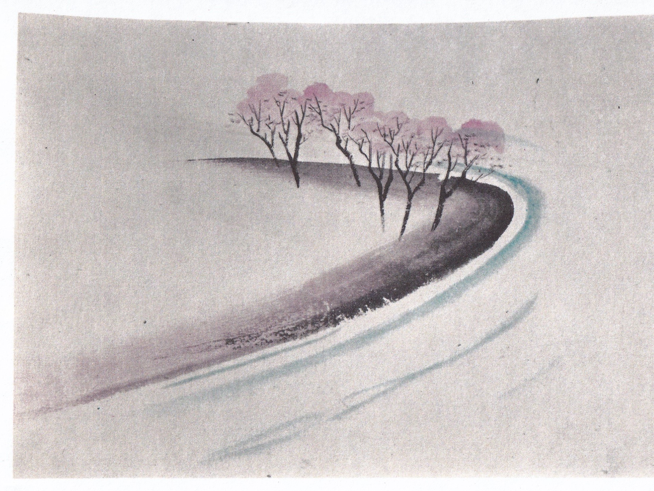 HIROSHIGE Cherry trees in flower on the bank of a river.