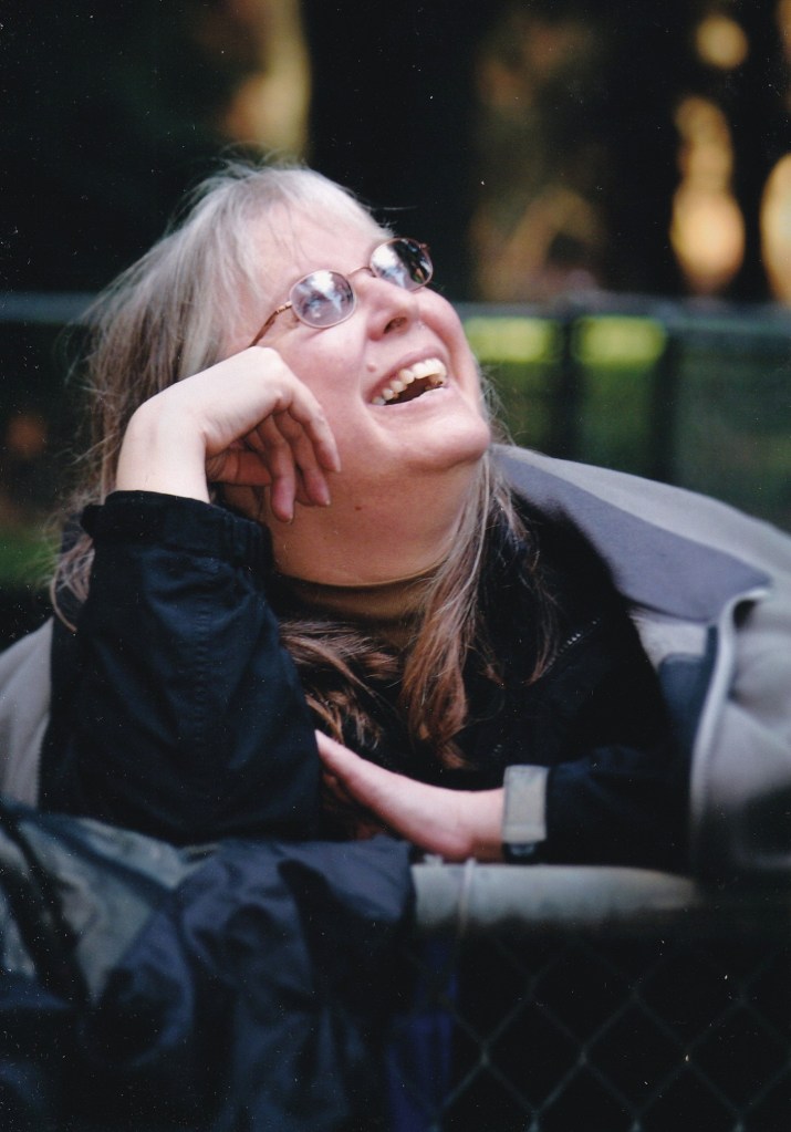 August will always be Nina Renee’s month for me. She was born August 9, 1956, in Tokyo, Japan; she died last August, here in Bellingham, Washington. This is the first anniversary of her death, and I want to mark it with two photos of her that I love and would like to preserve here. The first was taken soon after she moved here to Bellingham. The second was taken at her wedding to Mike Schway in 2004, a joyful, joyful event. I bless the day he became part of our family.